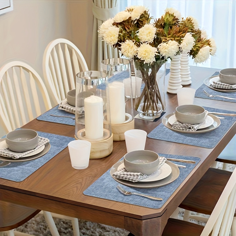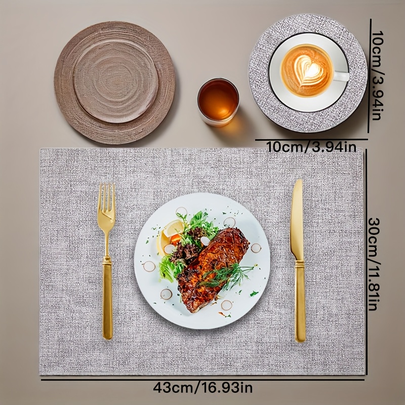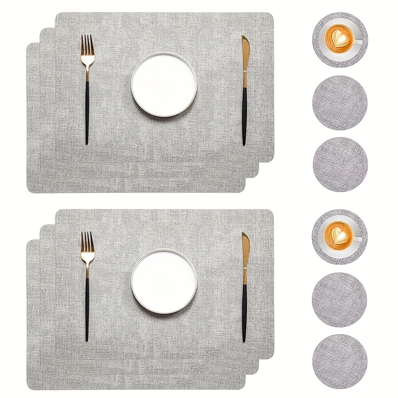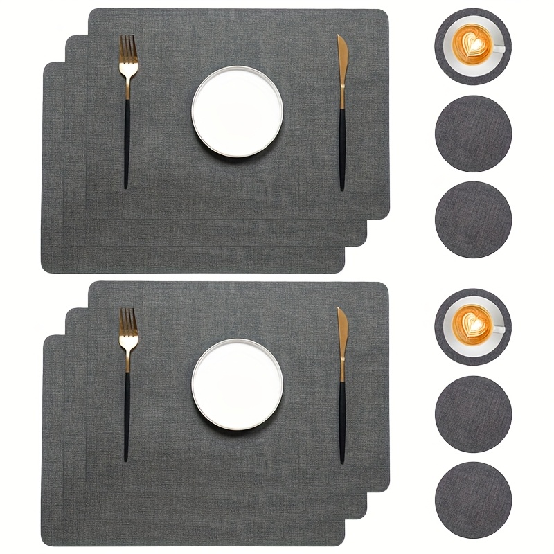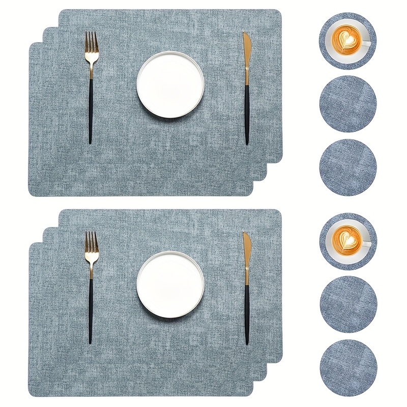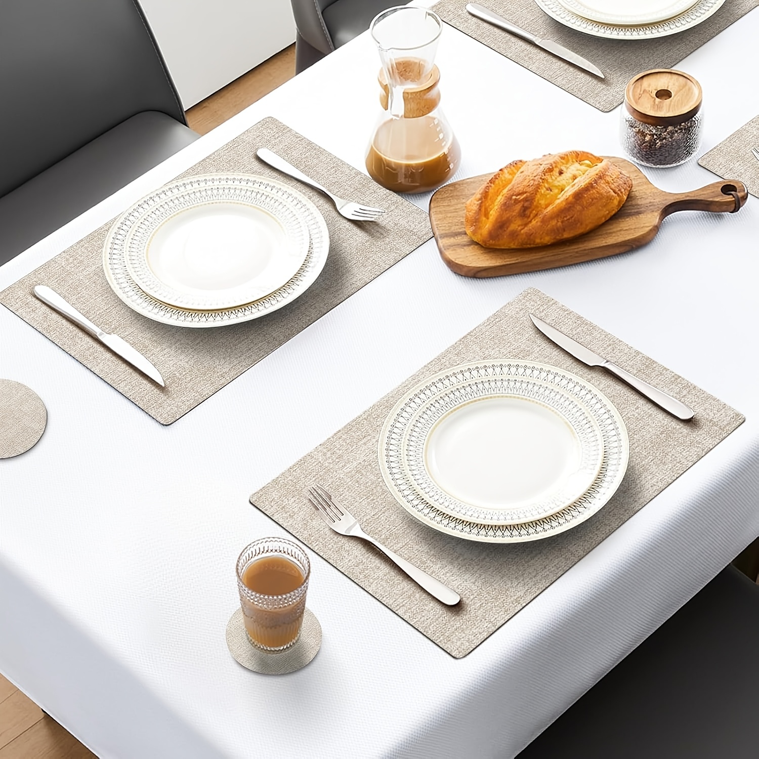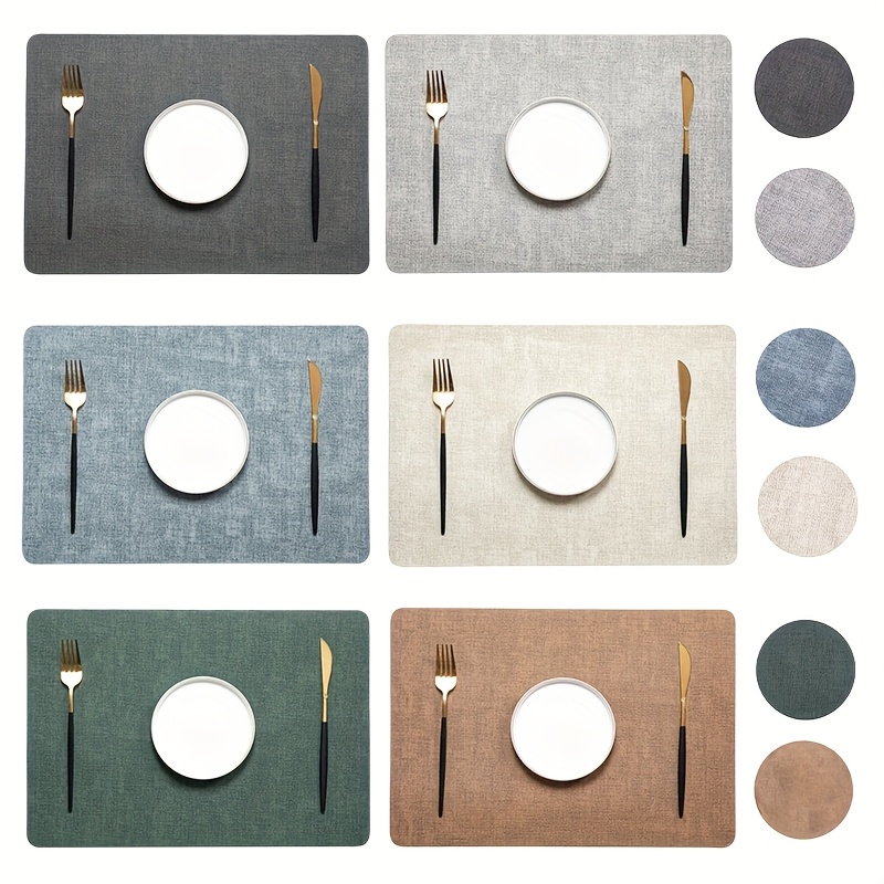 12pcs Set - Rectangular Faux Leather Placemats with Round Coasters, Heat Resistant Wipeable Washable Place Mats with Coasters, Coffee Tea Hot Drink Tabletop Coasters, Coffee Bowl Plate Mats Dining Table Mats, Suitable for Kitchen Restaurant Dining T