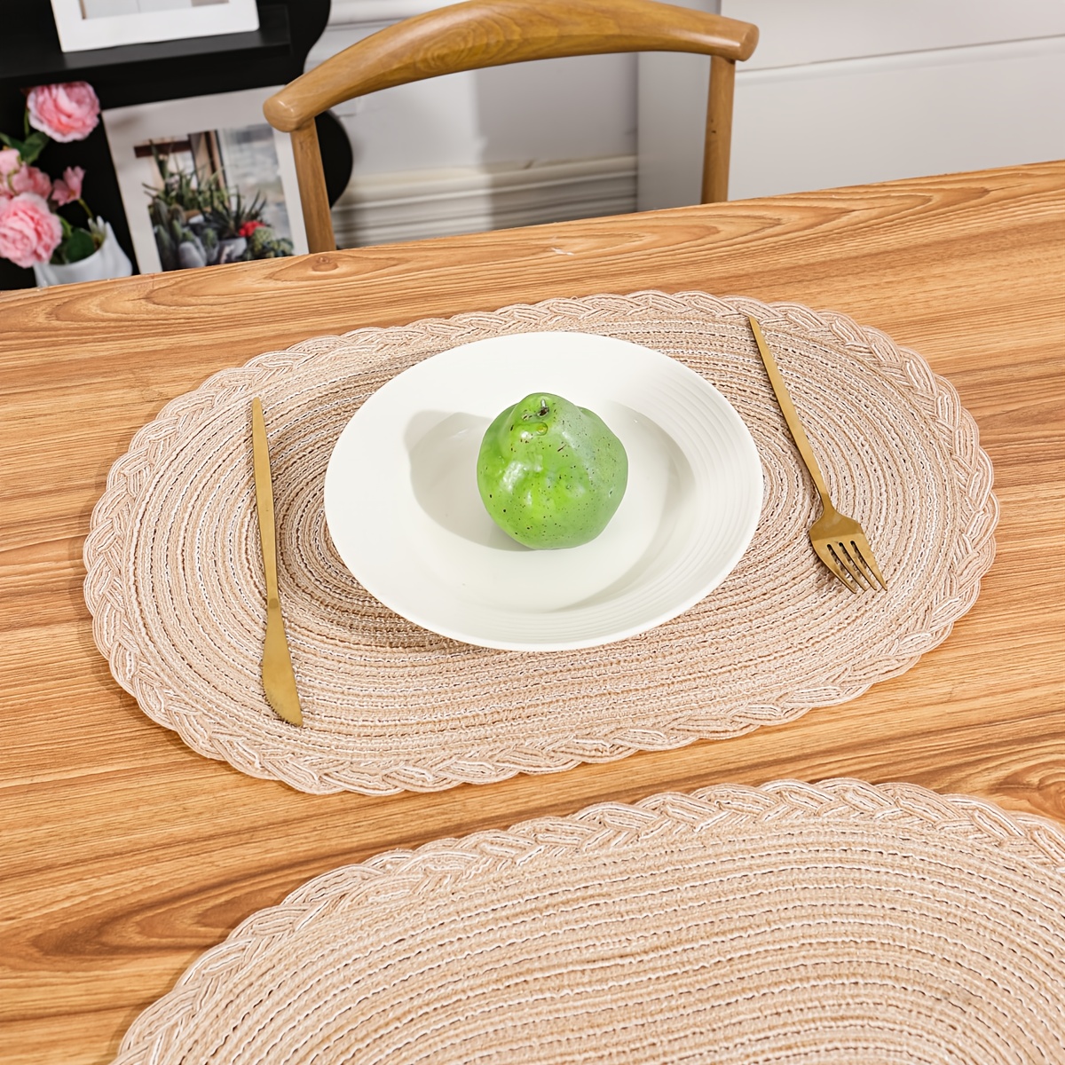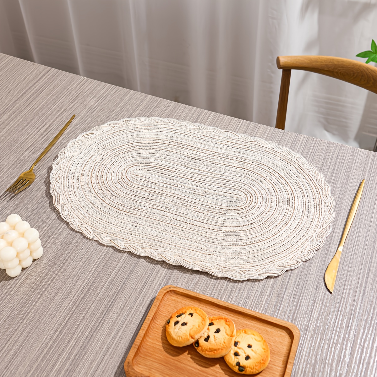 6\u002F8pcs of Rectangular Large Placemats with Lace, Kitchen Decorative Table Mats, Washable Western Plate Mats, Christmas Decorations, Dining Table Decor